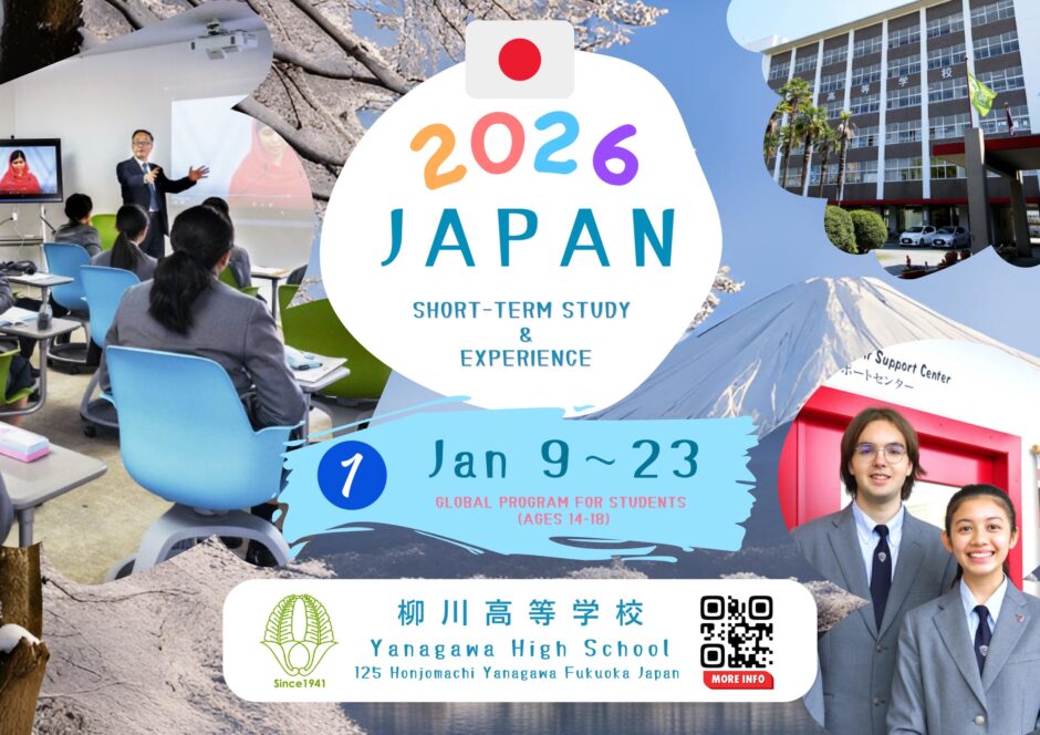 柳川高等学校では、日本の高校生活を体験したいと考える留学生向けに、短期留学プログラムを提供しています。参加にあたっての日本語のレベルは問いません。参加者は来日前にオンラインで日本語強化トレーニングを受けることも可能です。学校の夏休みや冬休みを利用して、ぜひ柳川高等学校での生活を体験してみませんか?皆様のお越しを心よりお待ちしております!
